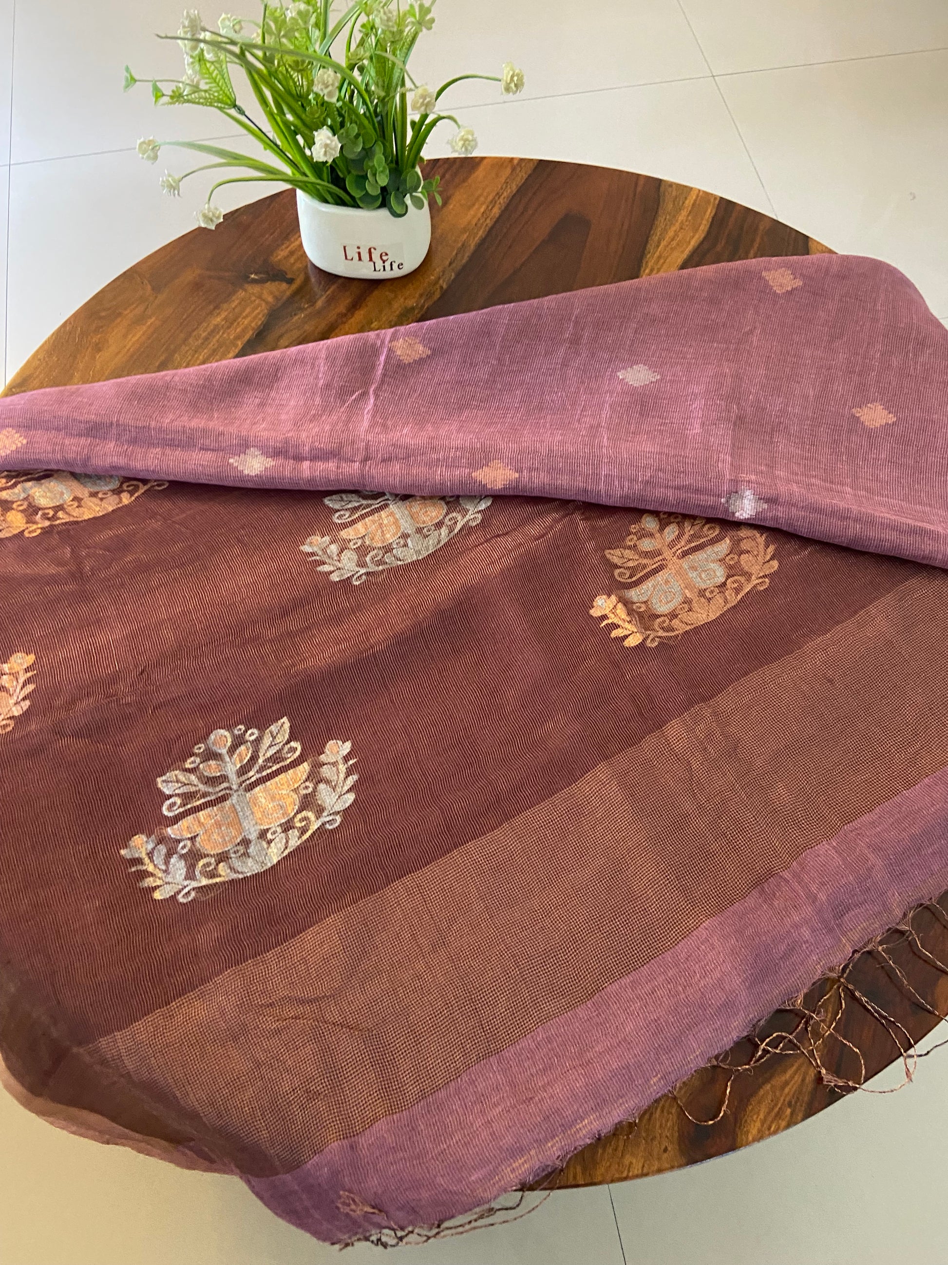 Reshom and Jayashree linen silk sarees combine the grace of silk with the comfort of linen. Known for their smooth texture and elegant drape, these sarees feature subtle sheen and fine craftsmanship. Perfect for both casual and festive wear, they offer breathable luxury with a touch of traditional sophistication.